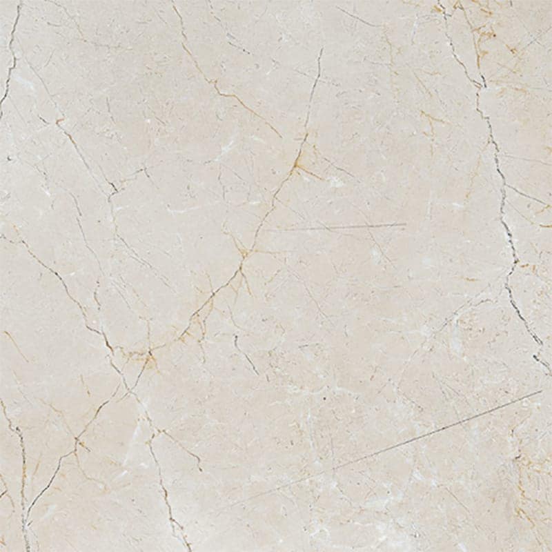 The veining in Crema Marfil Marble is typically light and delicate, ranging from subtle lines to more pronounced patterns. These veins can appear in shades of beige, tan, or slightly darker brown, providing a gentle contrast against the creamy background. The combination of the uniform color and soft veining gives Crema Marfil Marble a classic and refined aesthetic.